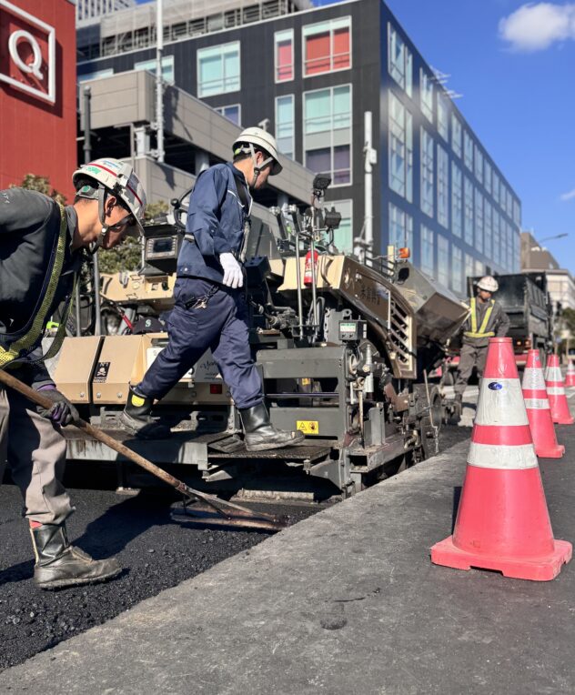 文京四・五・六丁目地先配水管改良工事 施工実績 2023-12-01 工事名 文京四・五・六丁目地先配水管改良工事工事完了時期 2023/12工事内容 公道に埋設された水道管更新(取り替え)工事の際に掘削撤去されたアスファルト舗装を更新工事完了後に再度舗装する工事です。 アスファルト舗装や白線、場所によっては横断歩道や「止まれ」の文字などを復旧します。画像は舗装時のローラー転圧です。